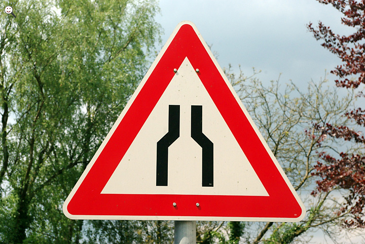 Verkehrsschild: Achtung: Verengte Fahrbahn